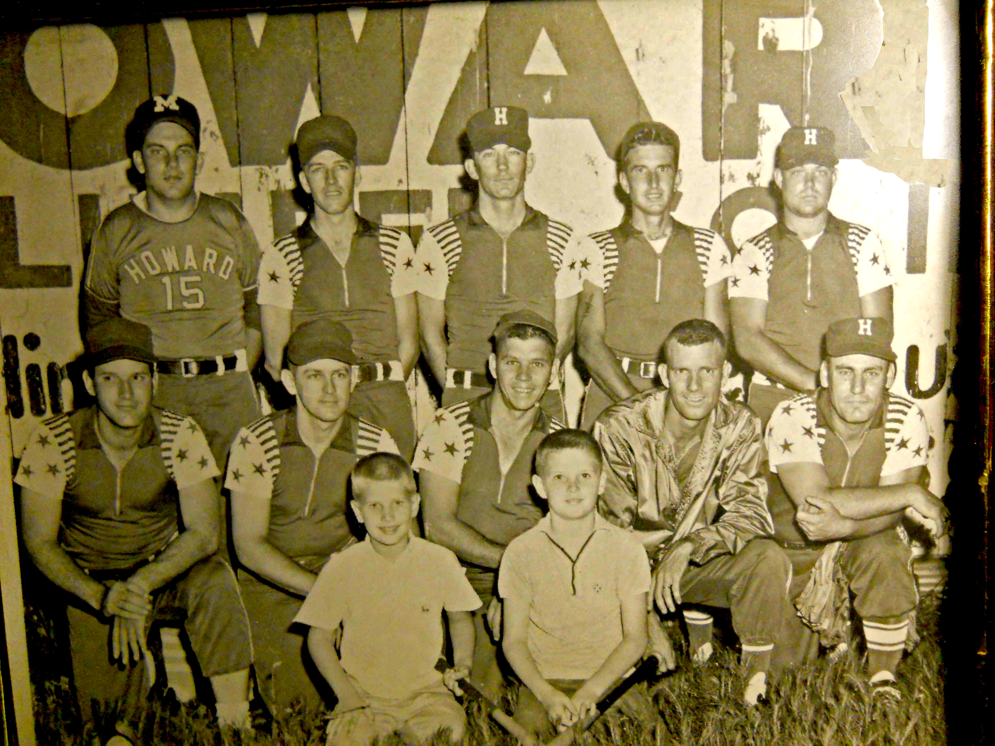 Dad's fast pitch softball team, Howard Lumber Co. He is top row 2nd from right. I am the bat boy, bottom left.